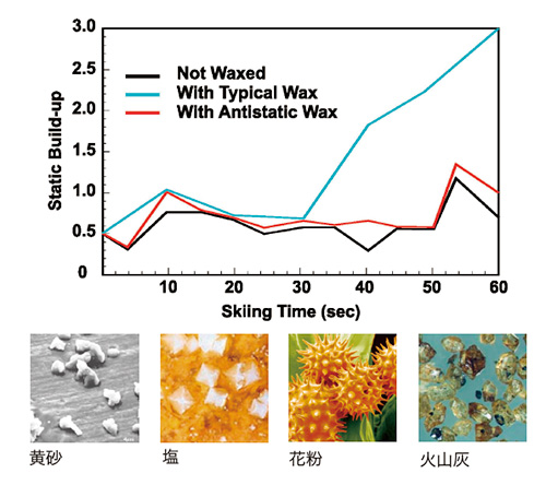 花粉、黄砂、塩分、火山灰、中国大陸からの大気汚染等の影響を受ける日本の特異な雪をターゲットにした次世代雪温別対応ワックスBOOSTERシリーズ全てのワックスには、マイクログラファイトと二硫化タングステンが配合されています。