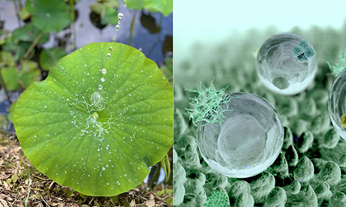 ドミネーターナノテクノロジー我々は幾年もの研究開発を経て、自然とナノテクノロジーの応用を取り入れることにより、フッ素を用いることなく、撥水性を高めることに成功しました。ロータス(蓮)の葉には天然の撥水性があるため、水滴は葉の上で球体に弾かれ分散します。顕微鏡写真で細かく見えるように、ミクロの毛細物質が「空気のクッション」として、水滴と葉の表面の間に存在します。ブースターシリーズのBP、HC、FFには、ワックスと水滴の間にこの「空気のクッション」を作成するナノテクノロジーを取り入れています。これによりハイドロカーボンワックスの撥水性を飛躍的に向上させます。 ![]() |